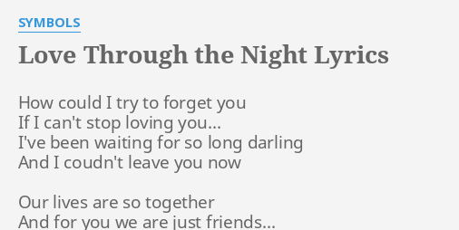 Love through the night. Love Thru the Night Lyrics. About Press Copyright Contact us Creators Advertise Developers Terms Privacy Policy Safety How YouTube works Test new features Press Copyright Contact us Creators. Another holding down three jobs just to support her family.