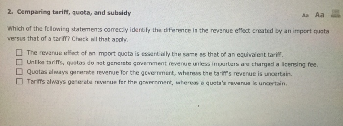 Which Statement Best Reflects The Difference Between Tariffs And Quotas?