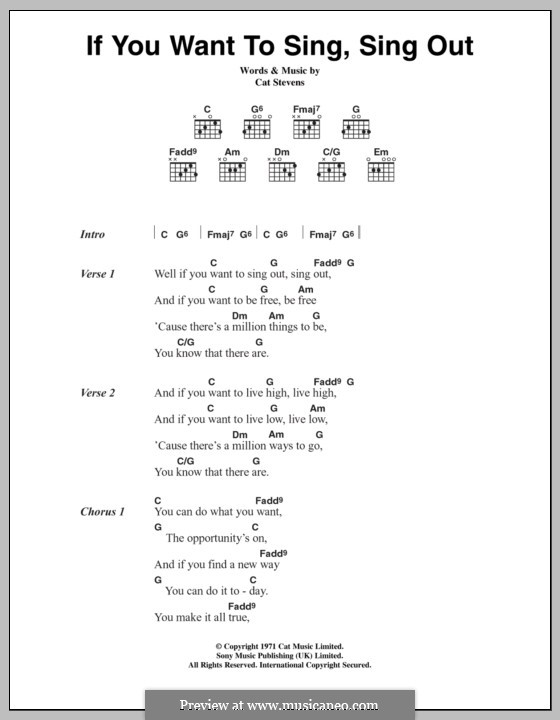 C G6 Fmaj7 G6 C G6 Fmaj7 G Wellif you. The song If You Want to Sing Out Sing Out was composed by Cat Stevens especially for the movie Harold and Maude in 1971. Well if you want to sing out sing out.